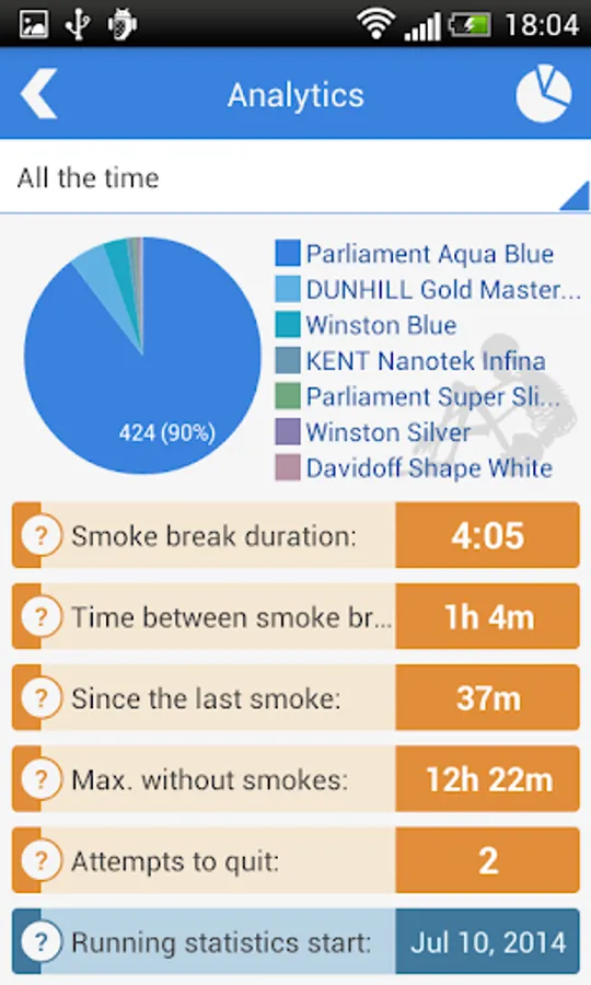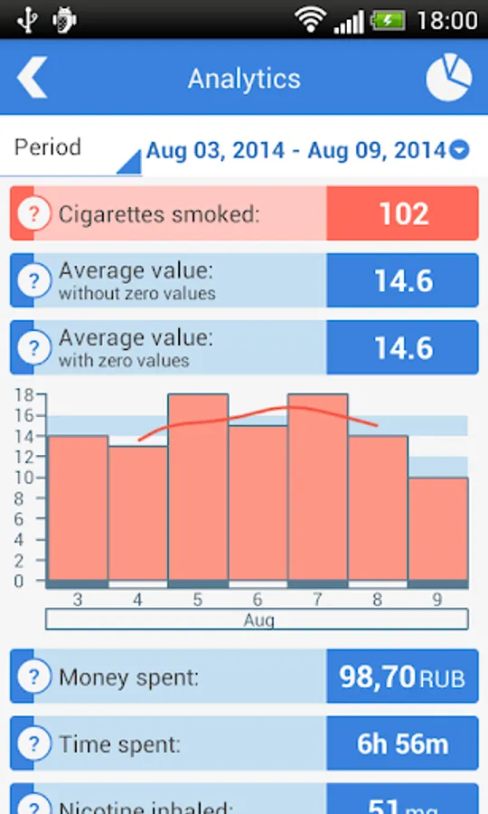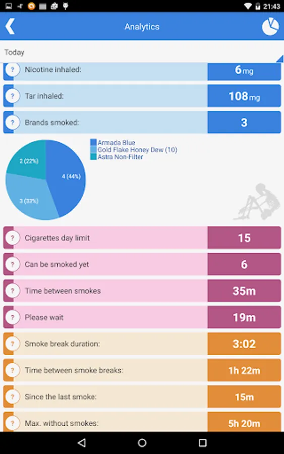 Analytics display shows all the data about smoking for the chosen period of time: