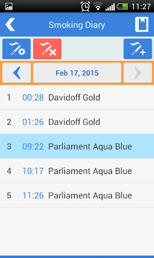 - adding cigarettes with Smoking Diary with accurate time indication