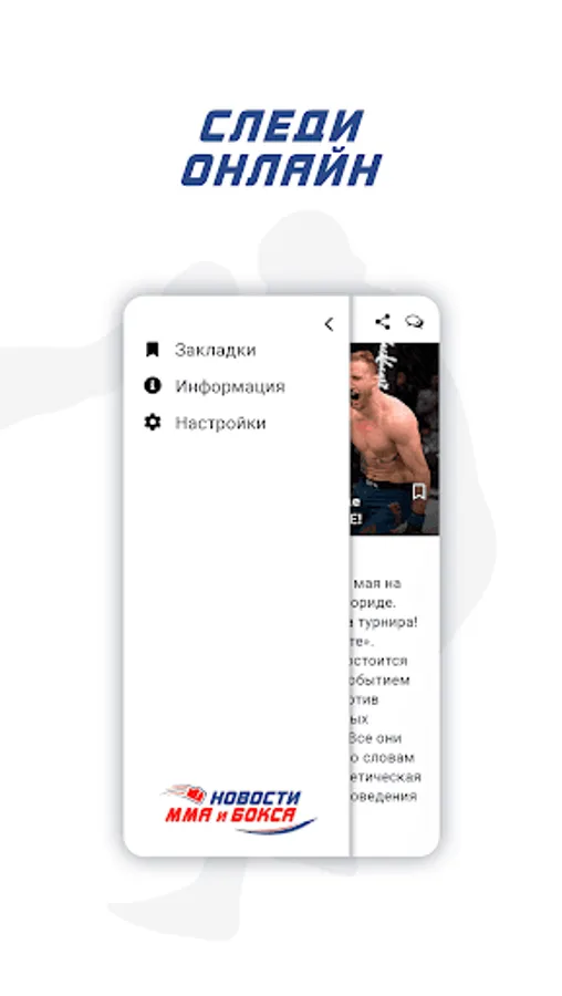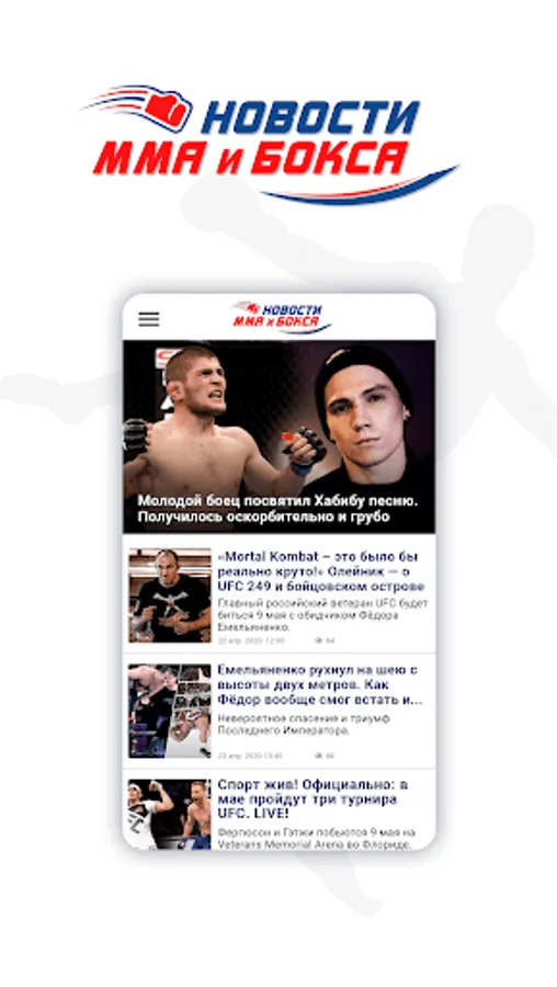 • keep abreast of the latest news of fights without rules, boxing, UFC and MMA - mixed martial arts and boxing of Russia and fights without rules of the world;