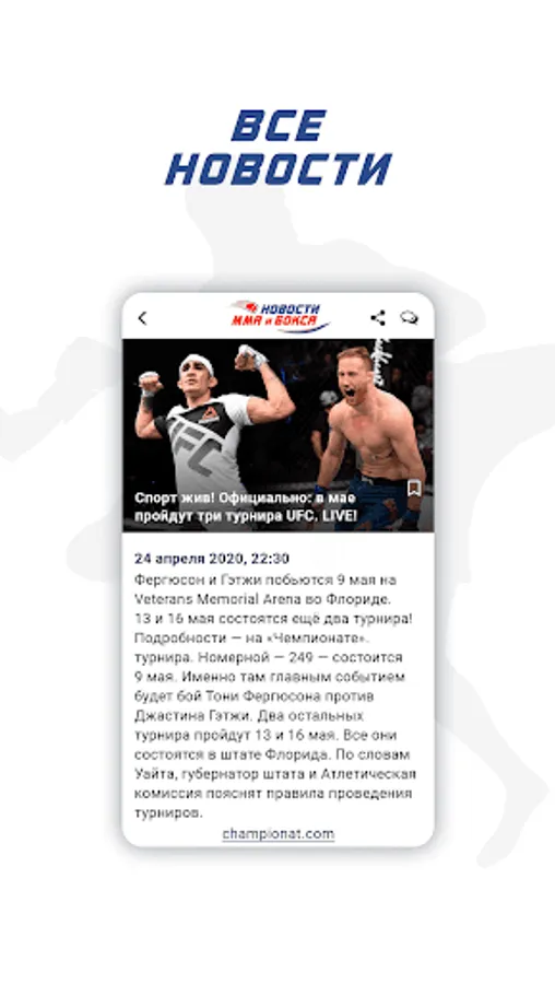 • add news to your favorites, read and return to them when it is convenient - MMA and boxing news in Russian;
