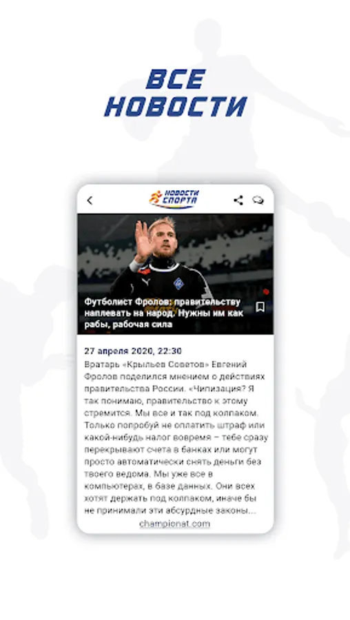 • add sports news to your favorites, read and return to them when convenient - sports news in Russian;