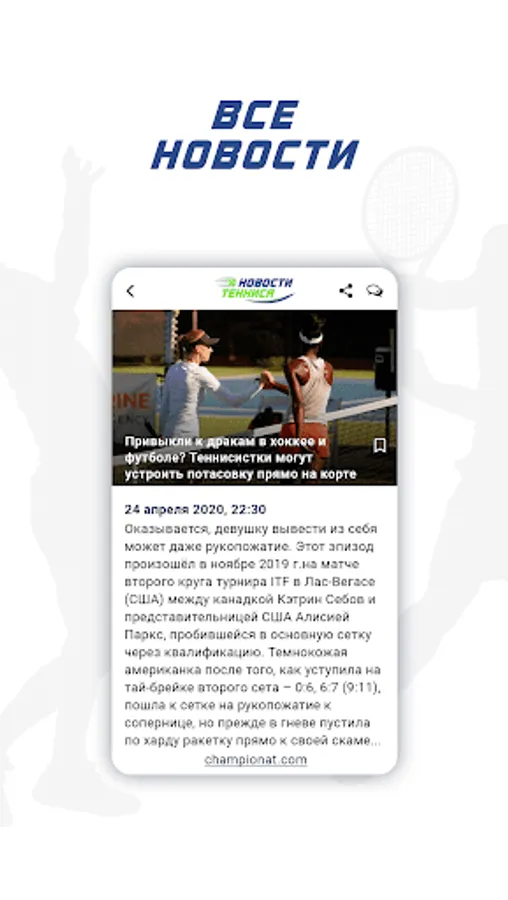 • add news to your favorites, read and return to them when it is convenient - tennis news in Russian;