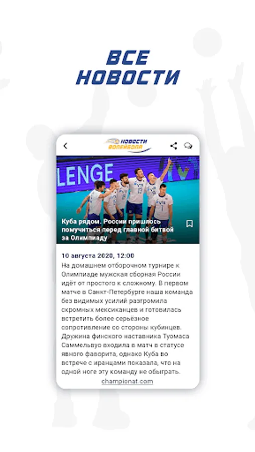 • add news to your favorites, read and return to them when it is convenient - volleyball news in Russian;