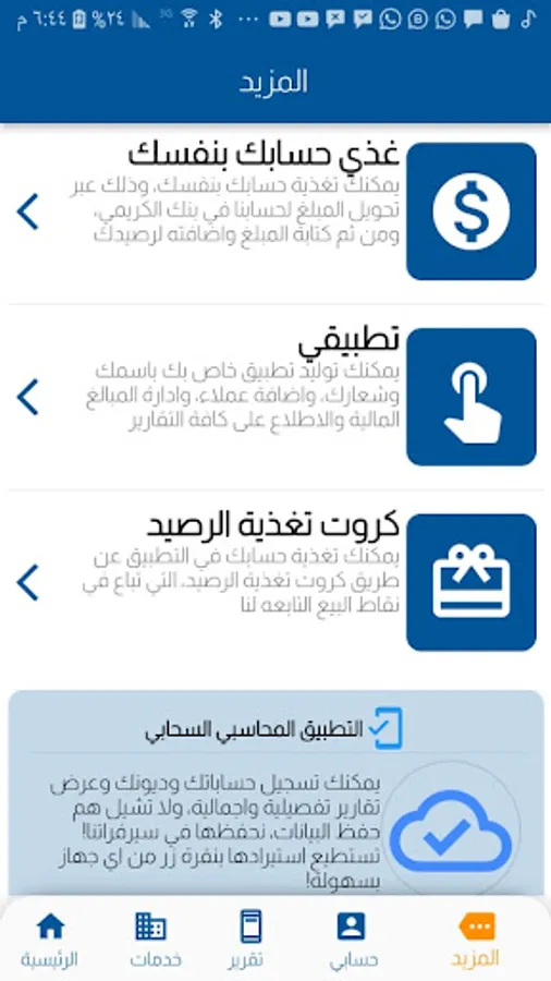 We offer you the most distinctive and versatile “Al-Zubaidi Mobily” application in providing services and ease of use. The application is specially designed with the latest software technologies for Android devices, supported by the dynamic display feature, and the provision of endless, exclusive and unique electronic services created by experts in the application of “Al-Zubaidi” pioneering in the field of applications Smart. With the "Taiz Tal" application, it will give you full control to manage your balance, your financial portfolio, and your electronic transactions such as payments, bonds and reports. The "Al-Zubaidi Mobily" application is characterized by ease of use and speed of implementation, supported by the "Offline" feature that saves the user from consuming and rationalizing the Internet. It is also supported with a single window payout booth to pay off all networks, in an easier and faster way.