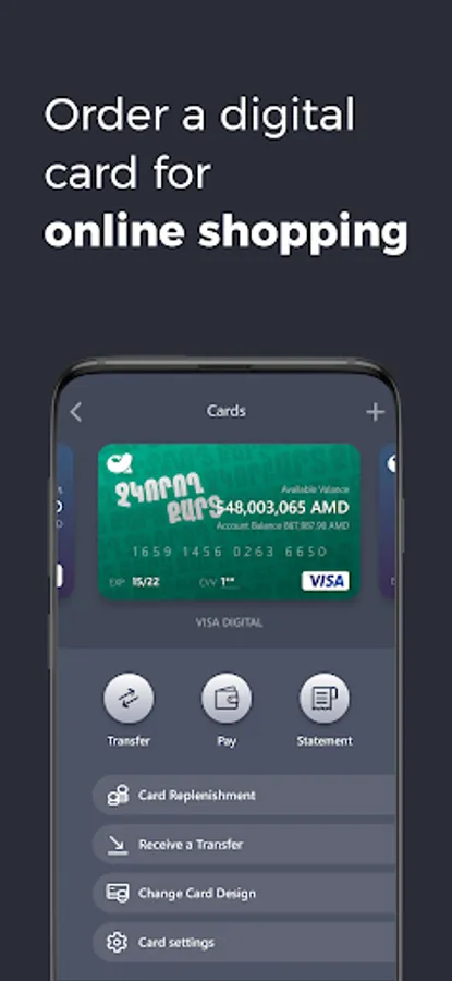• Make card to card transfers within Armenia and worldwide