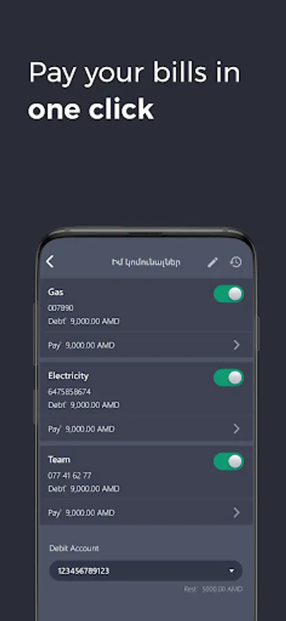 • Transfer money between accounts, and make transfer within the Republic of Armenia