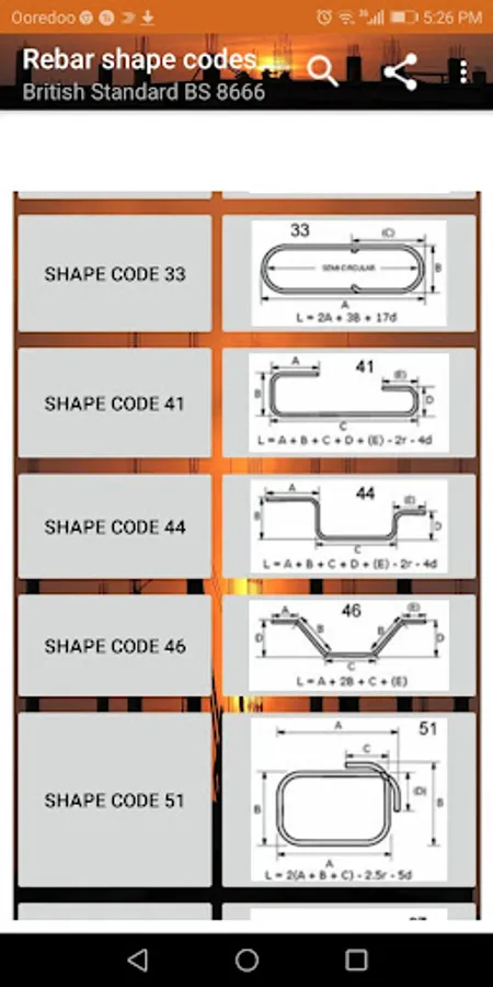 concrete Rebar bend schedule is a reinforcement concrete app , it is useful for civil engineer in reinforcement concrete detailing . The app act as rebar calculator in ordering to calculate rebar detailing such as rebar weight chart, rebar lengths, how to cut rebar and rebar bending chart.