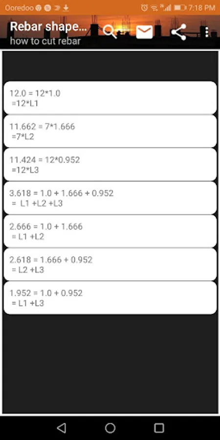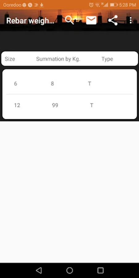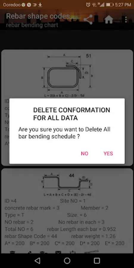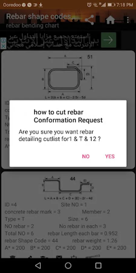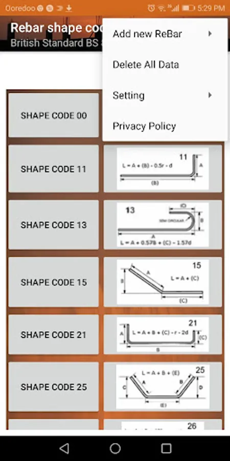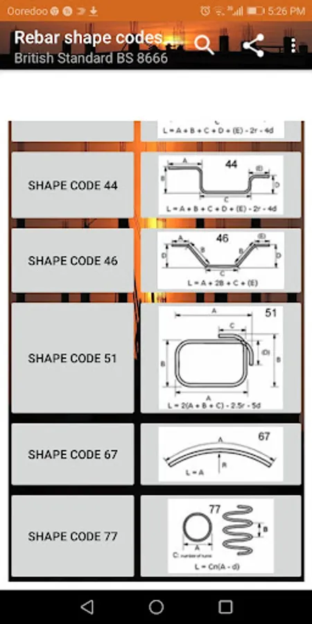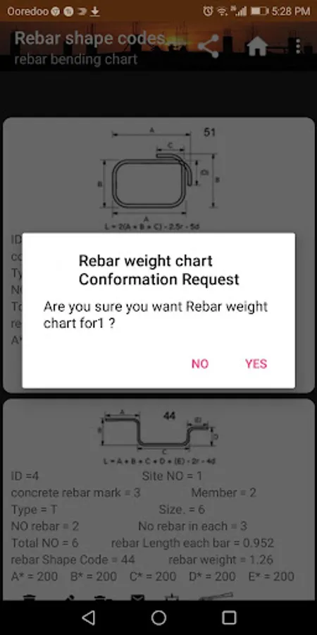 App input are steel rebar sizes or diameter , steel reinforcement concrete length, steel rebar types, steel re-bar shape codes.