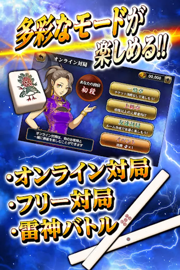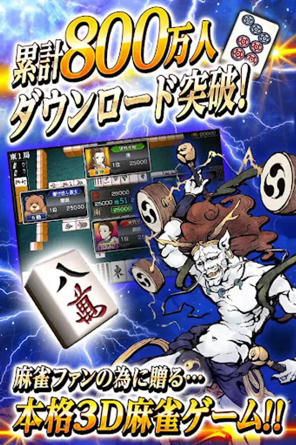 "Mahjong Raijin -Rising-" is a full-scale 3D mahjong game that even beginners can play. We are particular about 3D graphics and AI, and pursue the realism as if you were actually hitting mahjong.