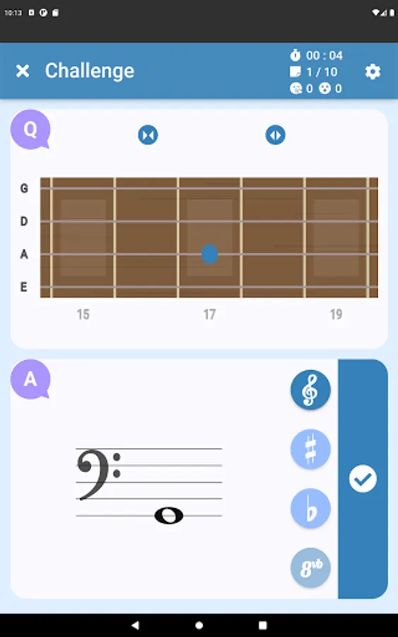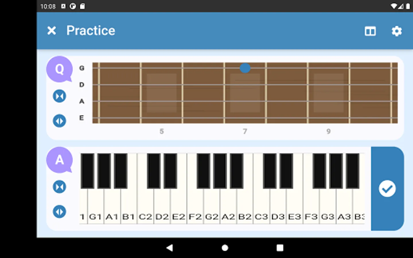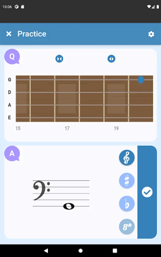 By training with this app, you will be able to intuitively grasp the placement of notes on the bass fretboard, tablature, stave, and keyboard respectively.
