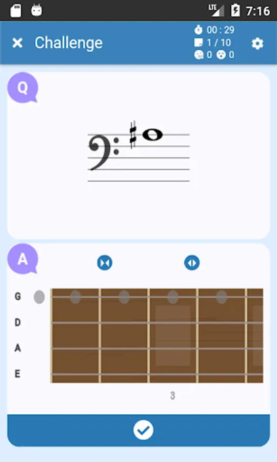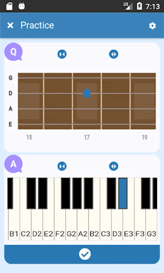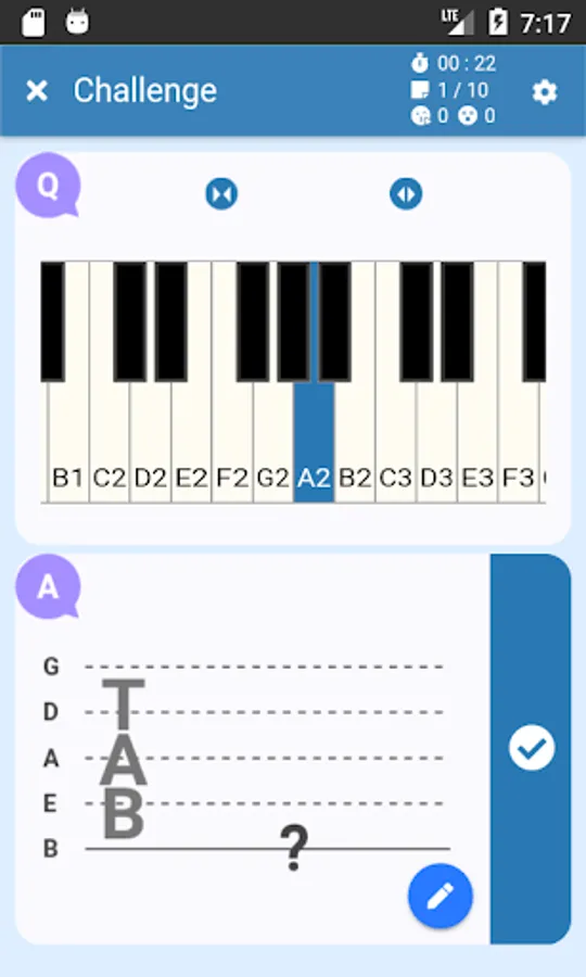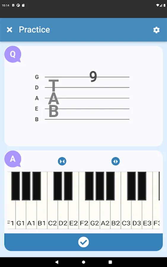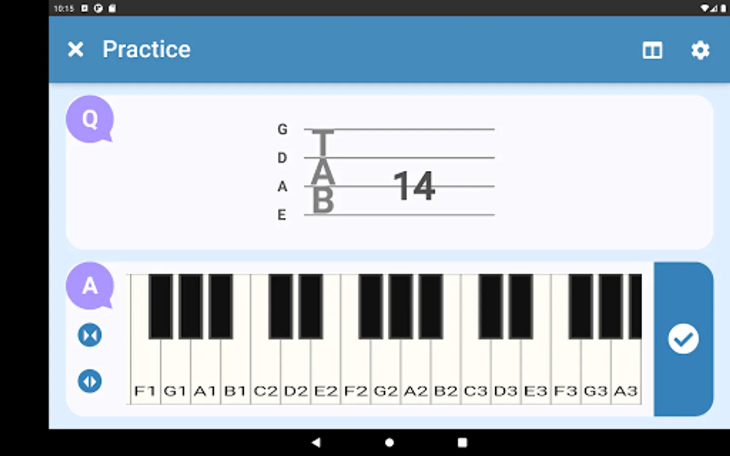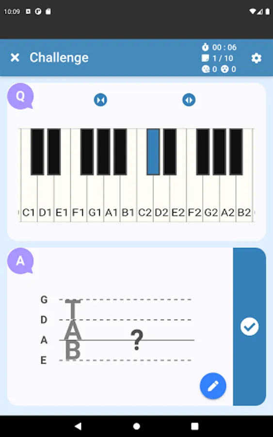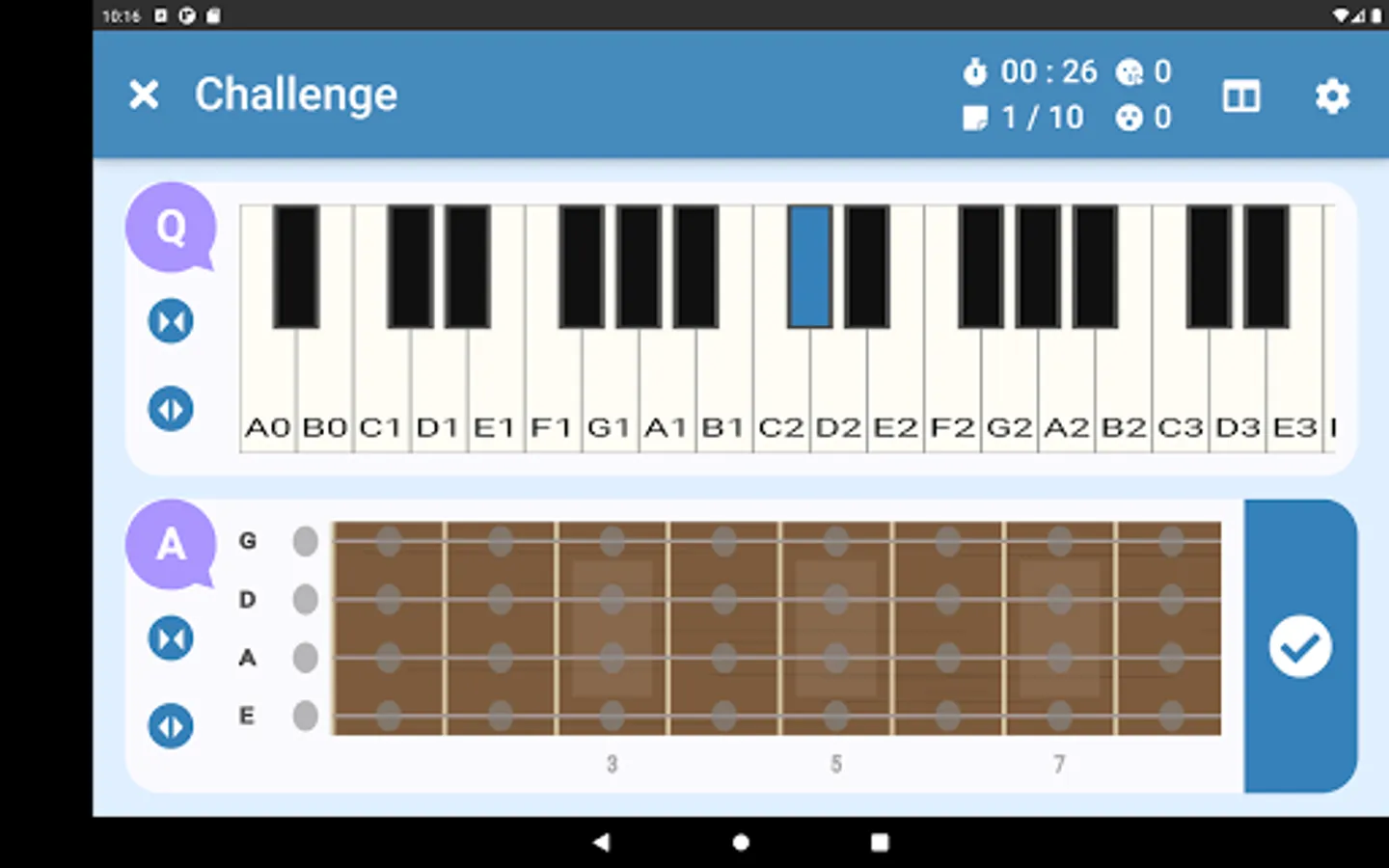 A graphic showing the specific pitch appears in the question field, so enter the same pitch in the answer field.