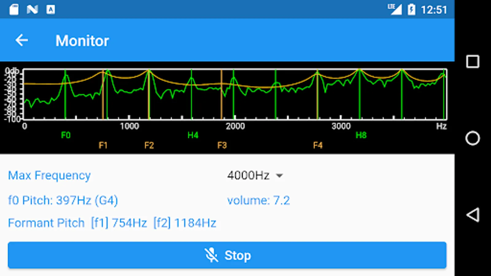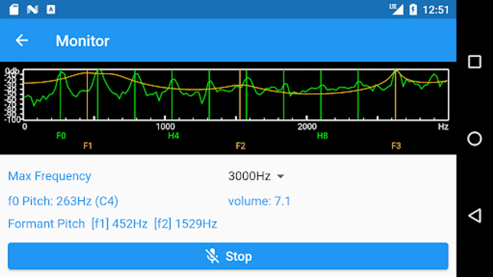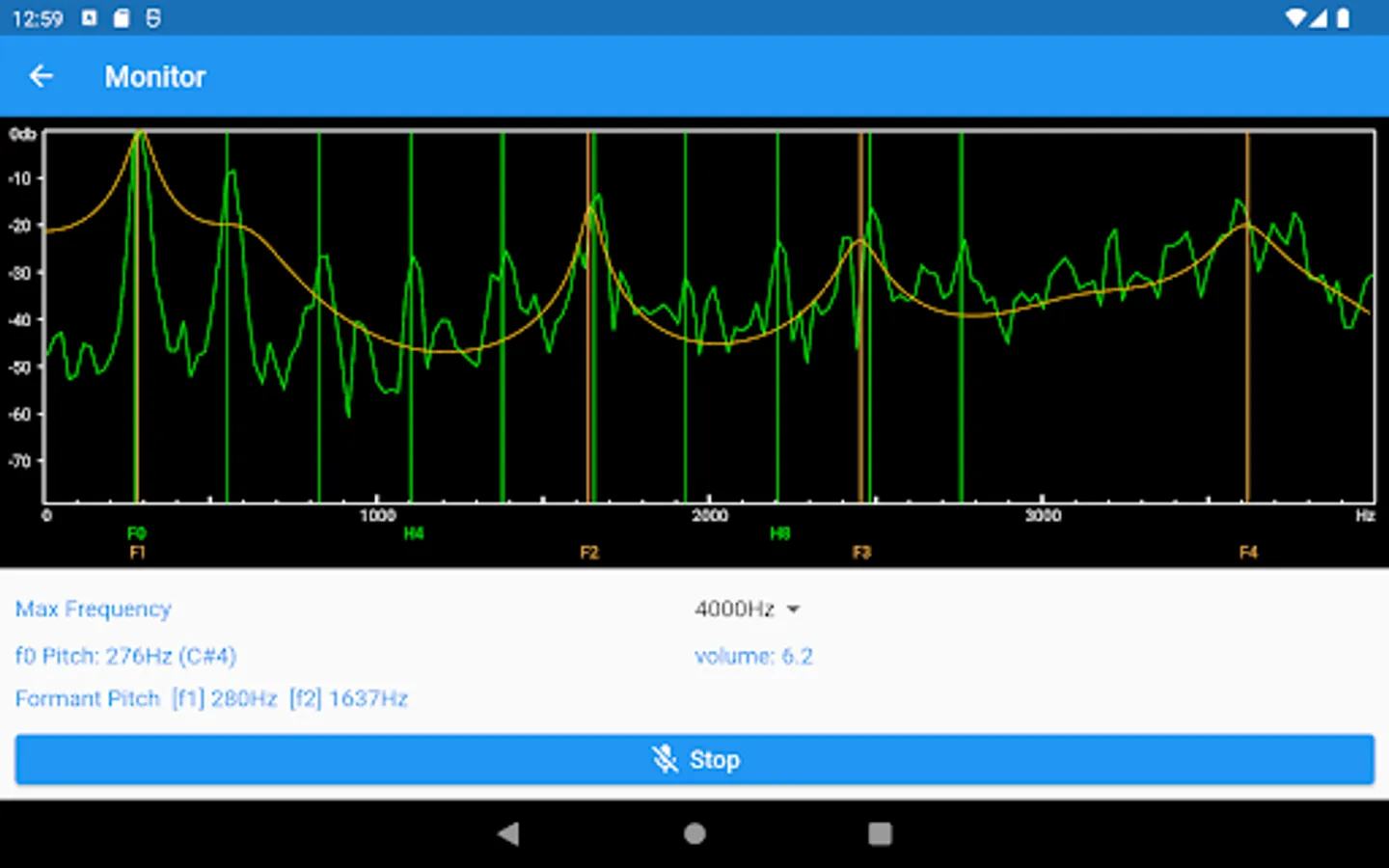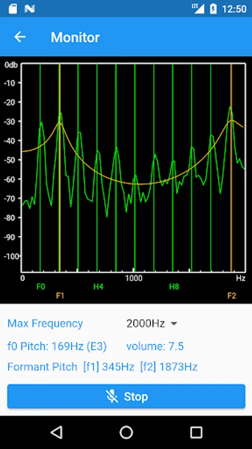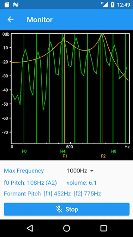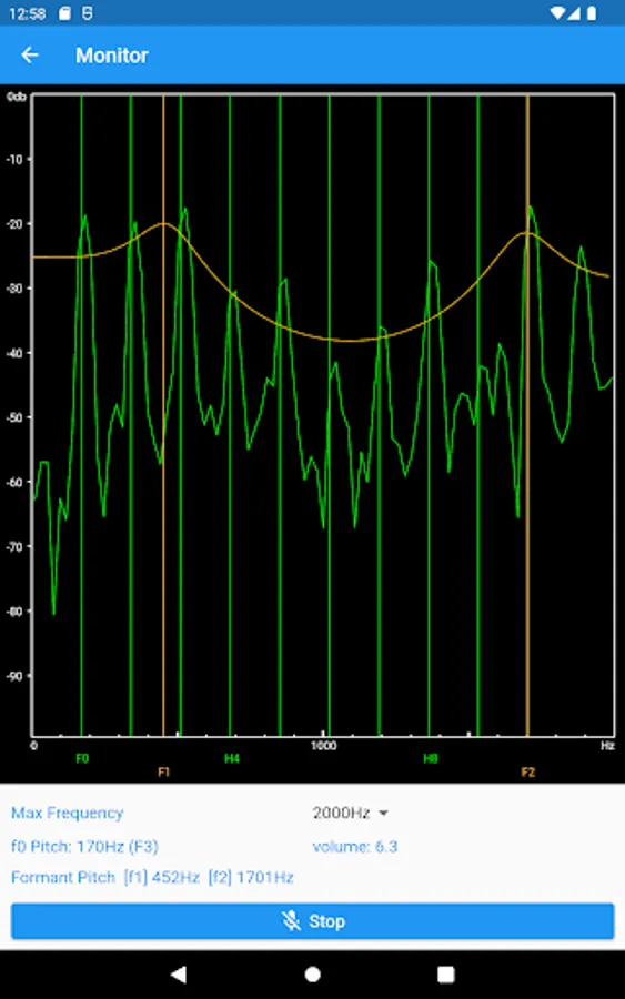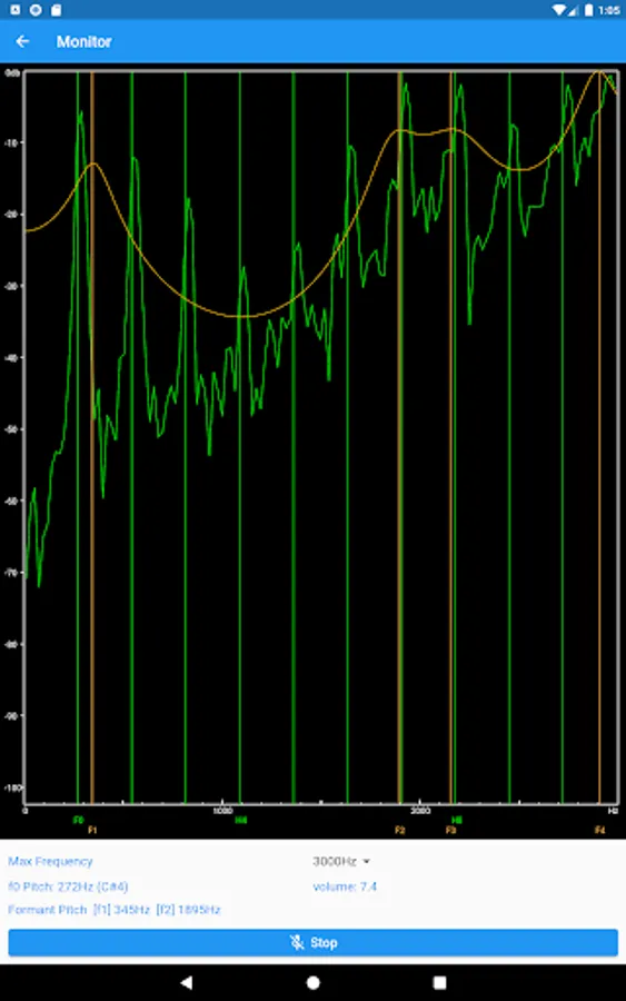 This application is a monitor for analyzing the overtones and formants of the voice.