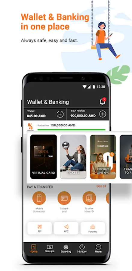 - Attach any ArCa, VISA, Mastercard, Amex card and make payments/transfers