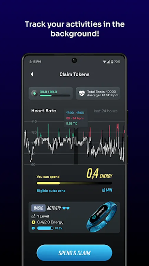 The heart rate algorithm allows users to do any activity to earn tokens. Not only outdoor walking or running. This point is super actual for cold and hot countries! Moreover, it is attractive for people who prefer indoor activities!
