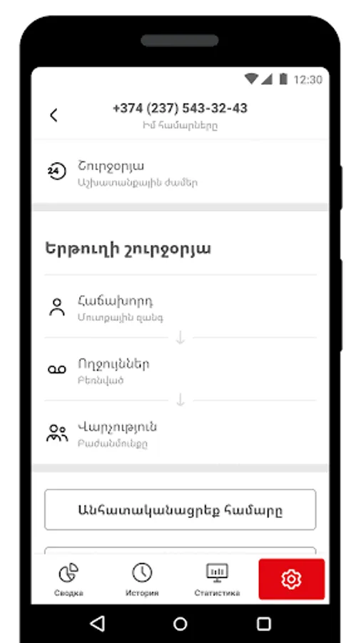 Install the PBX Viva-MTS mobile application, enter the login and password for your personal VATS account and control the company's calls in real time.