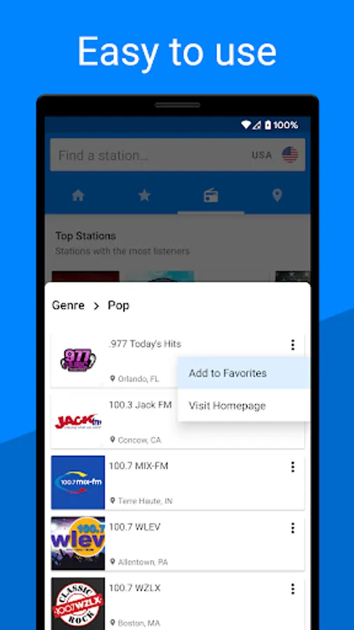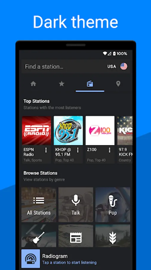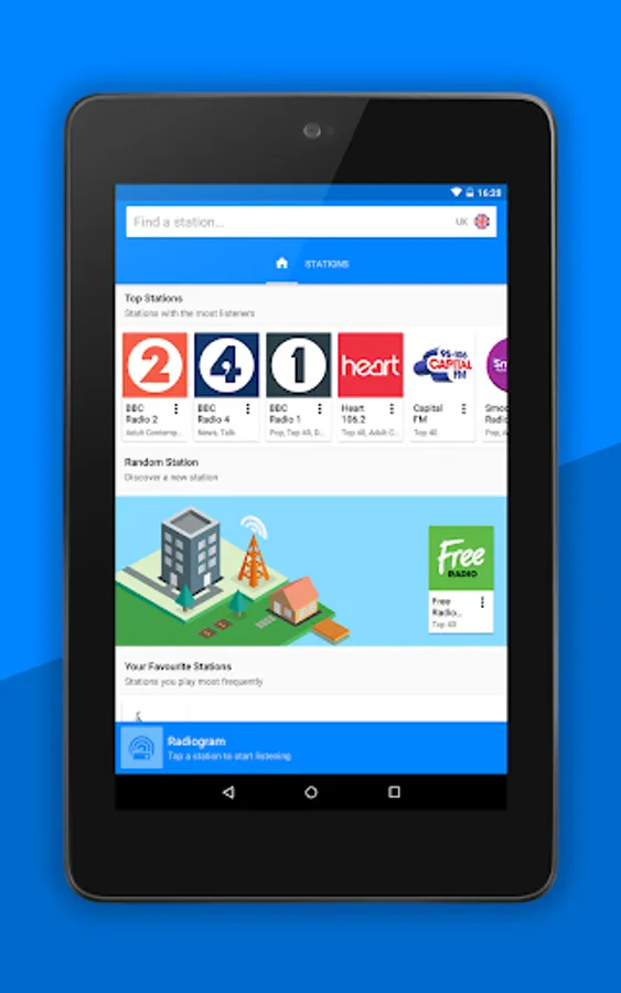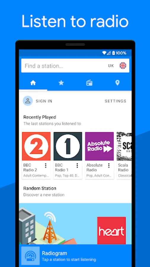 With Radiogram you can listen to radio stations on your phone or tablet. No aerial is required, only an internet connection.