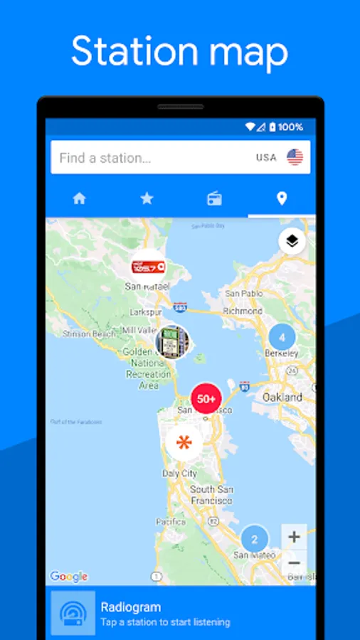 Radiogram has a beautiful and simple to use interface based on Google's Material Design.
