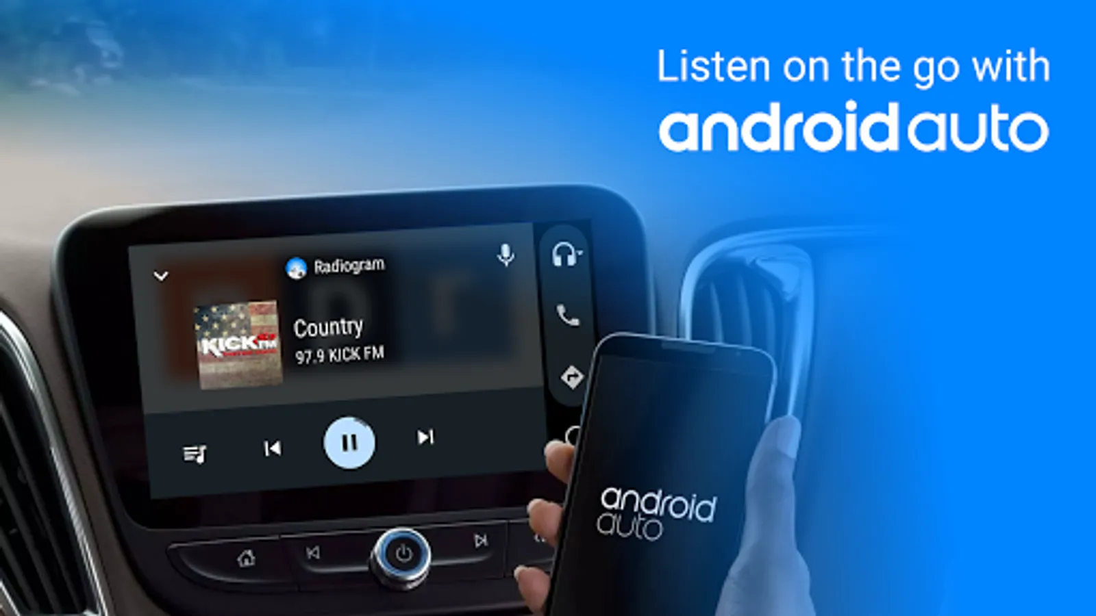 Radiogram supports Android Auto. Alternatively, connect Radiogram via Bluetooth to your car and listen to radio stations on the go!
