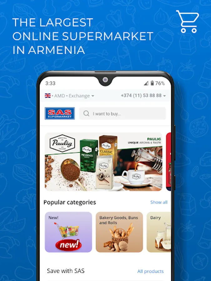 We offer access to great number of products (30.000+) which creates a way to simple shopping – just like how it was in our offline stores. You can find grocery, sweets, baby food etc. and pay for them online or by cash.