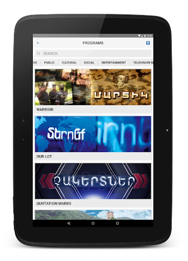 Never miss your favorite TV shows, movies and news even when you are away. Use your smartphone or tablet to live stream Public TV channel of Armenia, watch latest shows and movies on demand, browse through schedule of programs and do much more with this easy to use application.