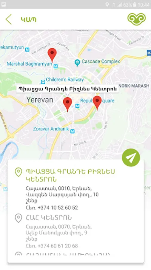 facilities in many sites in Yerevan and in different cities of Armenia.