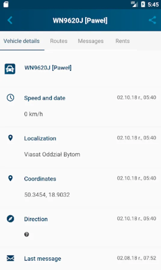 • textual presentation of routes traveled by selected vehicle in the desired period of time, together with a summary of the basic parameters of the vehicle