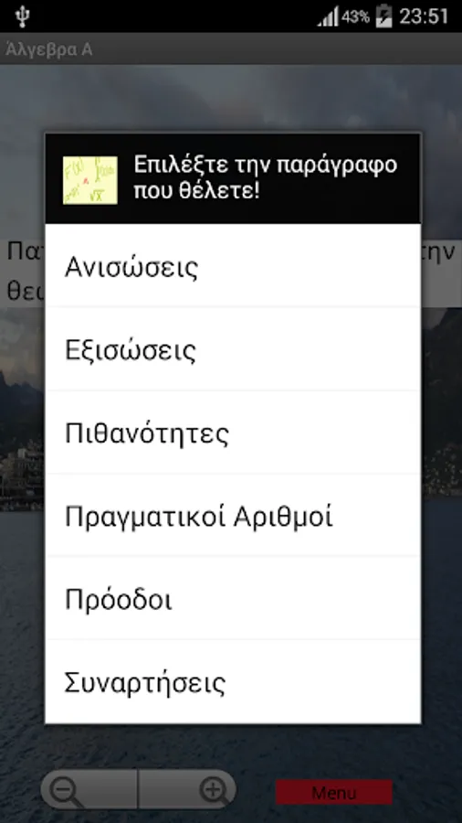 Μαθηματικά A Λυκείου - Άλγεβρα Screenshots