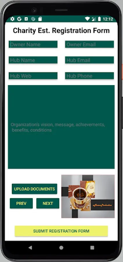 In order to be able to create your own hub on the application platform you must contact the application administrator in the first stage by sending a message from the activity specified within the application, describing the vision and mission along with current accomplishments. Upon approval, a completed standardized form is sent to be filled by the applicant whether a charity receiver or a charity donor