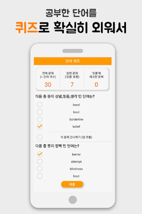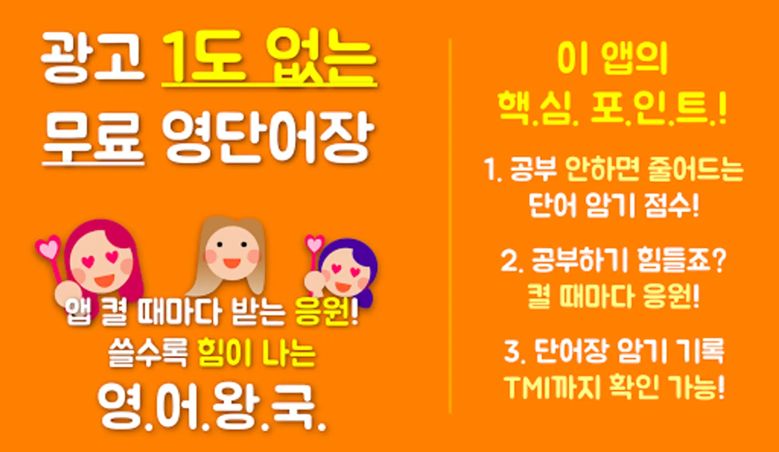 영어왕국은 다음과 같은 특징이 있는 영어 단어장 앱입니다.