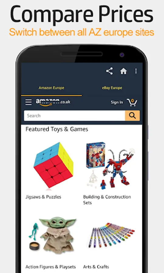 Shopping Amazon Europe sites couldn't be easier. Our handy app allows you to browse EVERY site with JUST 1 CLICK! Find amazon deals throughout Europe.