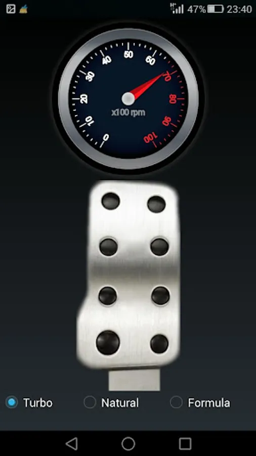 Have fun with this gorgeous realistic gas pedal, the application detects the movement of your mobile phone and accelerates or decelerates in a real way, you can simulate several motors injection cut off.