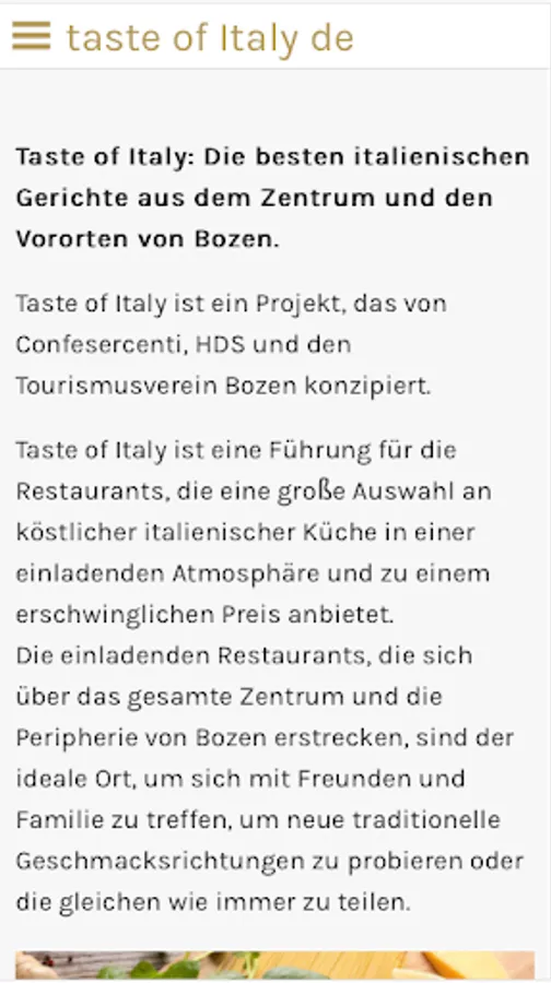 Taste of Italy is a project conceived by Confesercenti and financially supported by the municipality of Bolzano.