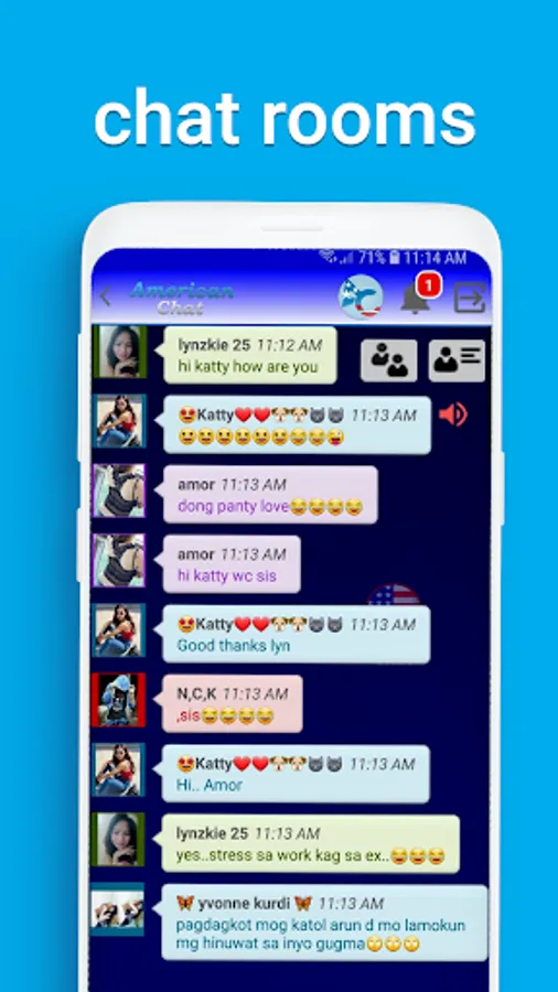 American chat : 👋 is an excellent way to meet and Stay connected with American people and strangers, see why we are one of the best Usa chat apps. we use a simple and easy format to start using amazing chat room platform, creating an amazing app so you can be comfortable when you chat with others, and meet up new friends