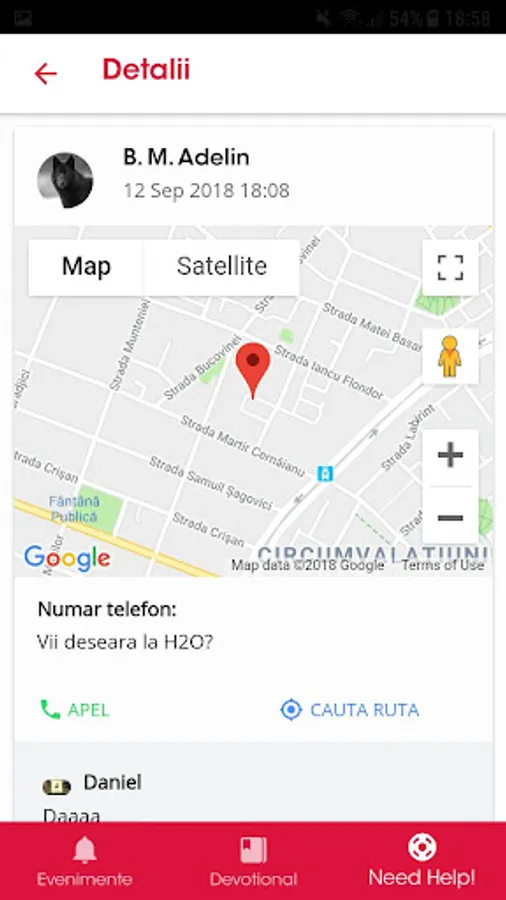⁃ This section offers the possibility for any registered user to ask for help if needed. For example, in a critical situation, you can add a requirement, question, or even ask for personal help to those around you. Each application owner will receive a notification that a "Amic4us" is in need. This will be the location and contact of the person who sent the request for help!