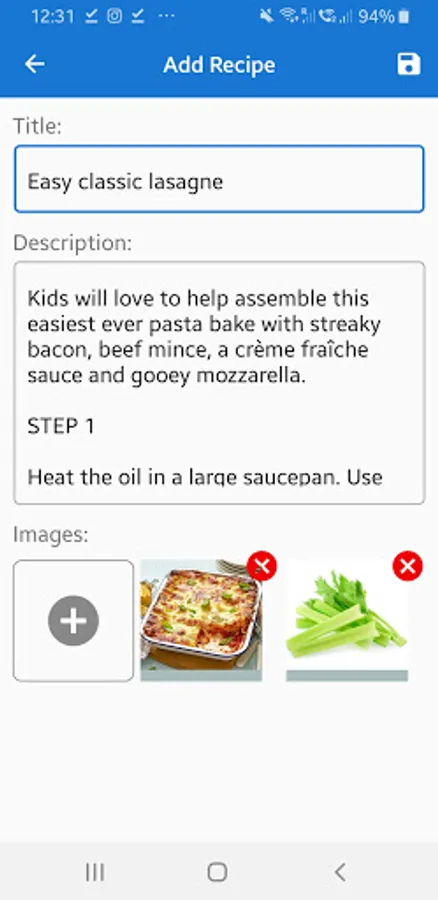 You have the ability to write your recipes and add photos to them, you can edit, delete and share your recipes with your friends and family members.
