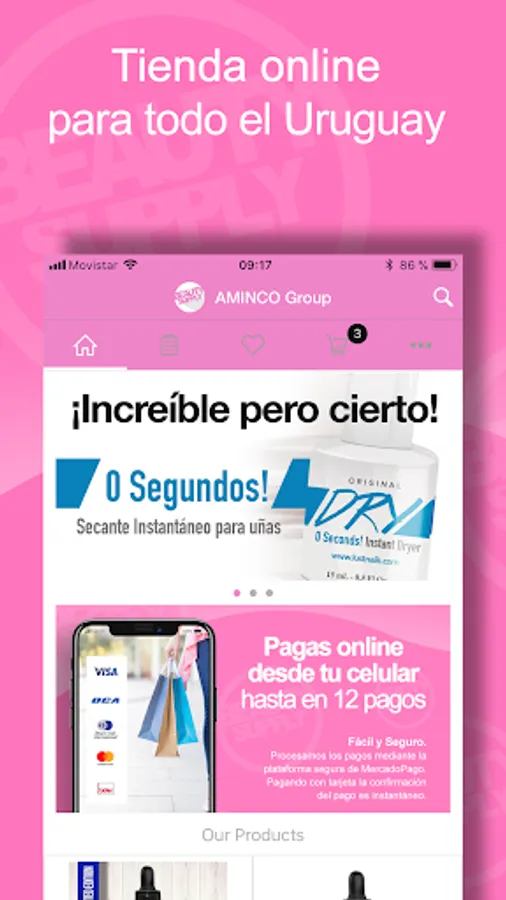 When placing your order you can choose to have it ready at any of our locations to make a Pickup or otherwise we have fast shipments to all of Uruguay.