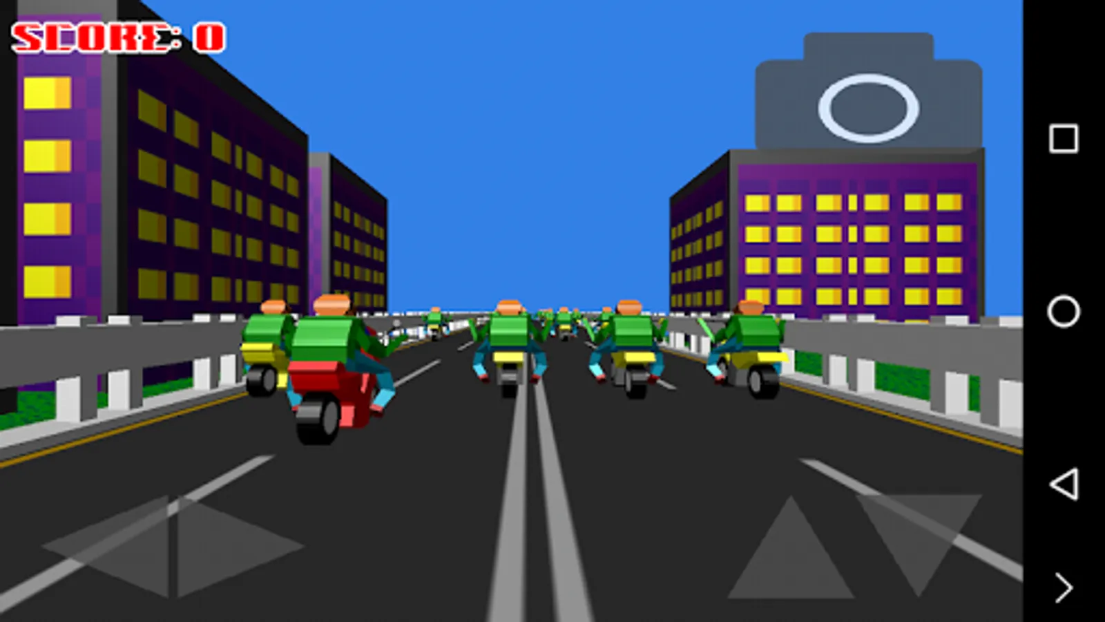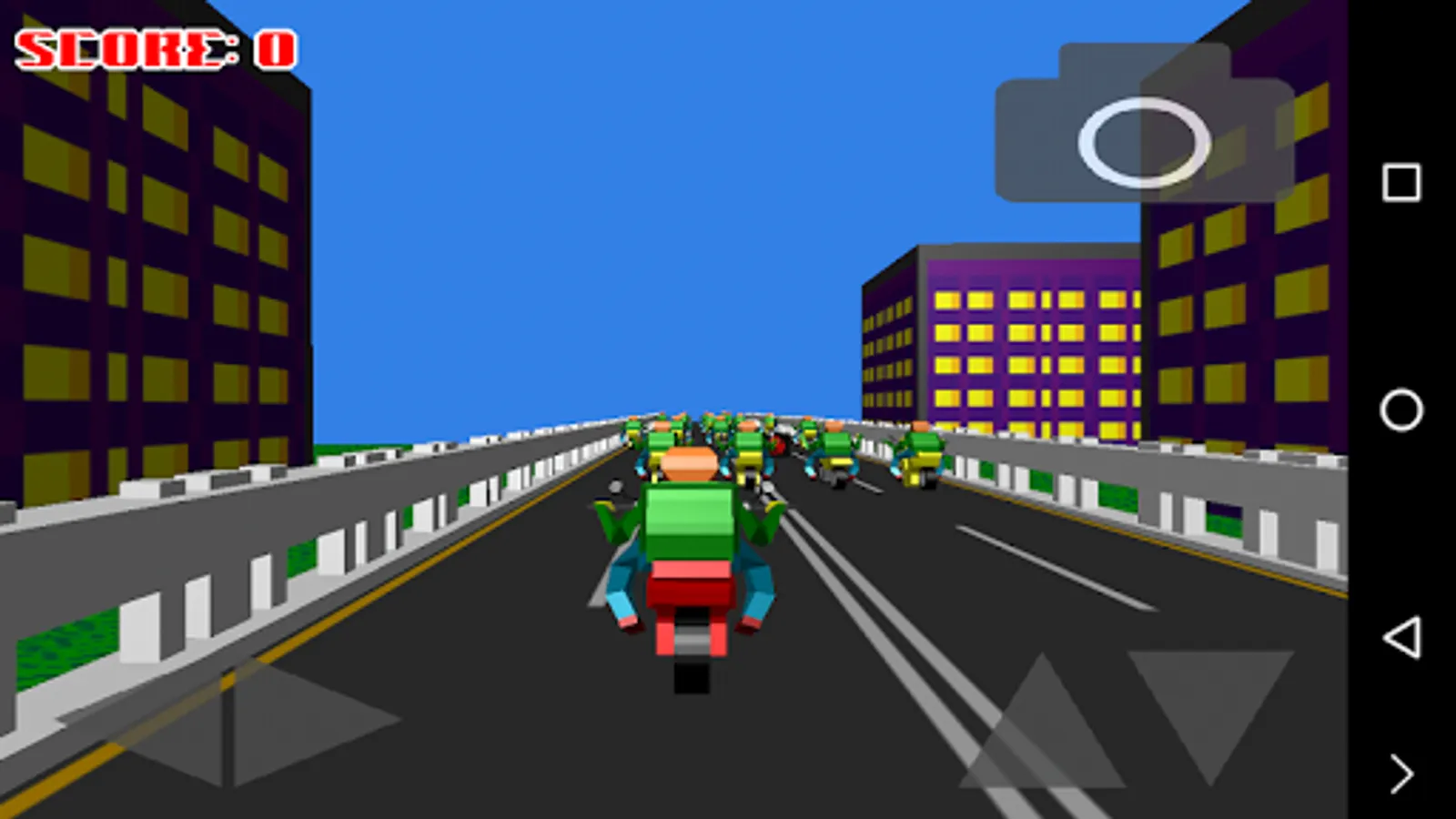 Drive on the highway and pick up score. If you get enough score, you will be able to buy new motorcycles. Avoid obstacles on your way.
