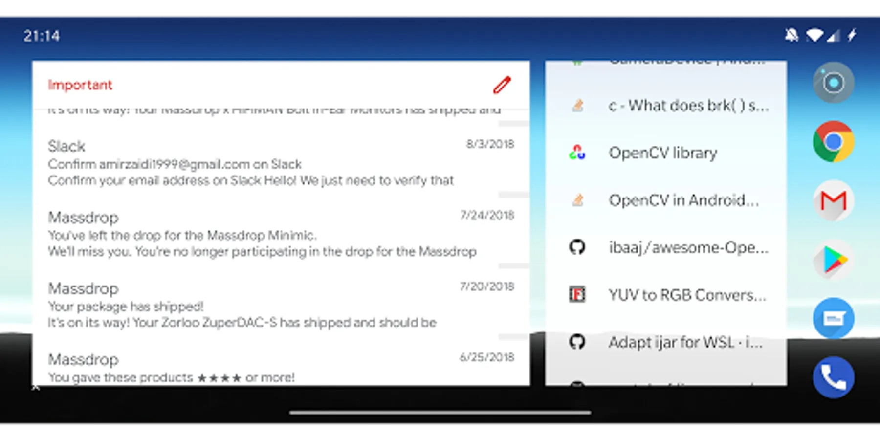 Swipe right to open a feed selected in the settings. Any app can implement a feed.