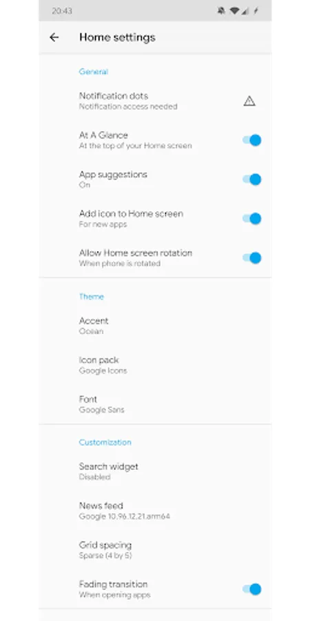 Choose if you want 4, 5 or 6 columns on your home screen. Or let the launcher decide using your phone's size.