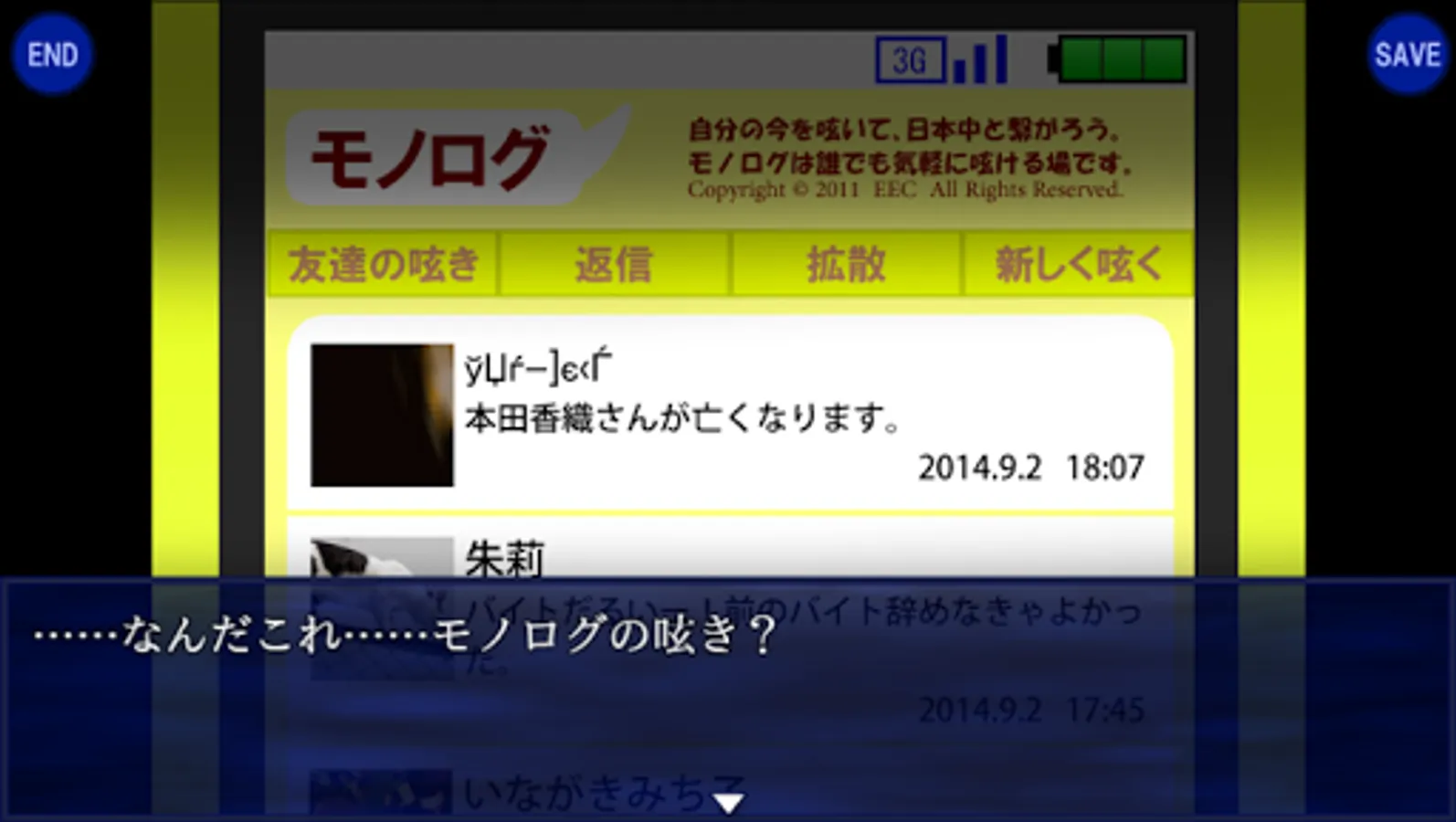 そのモノログに、突如として現れた正体不明の文字化けしたアカウント。