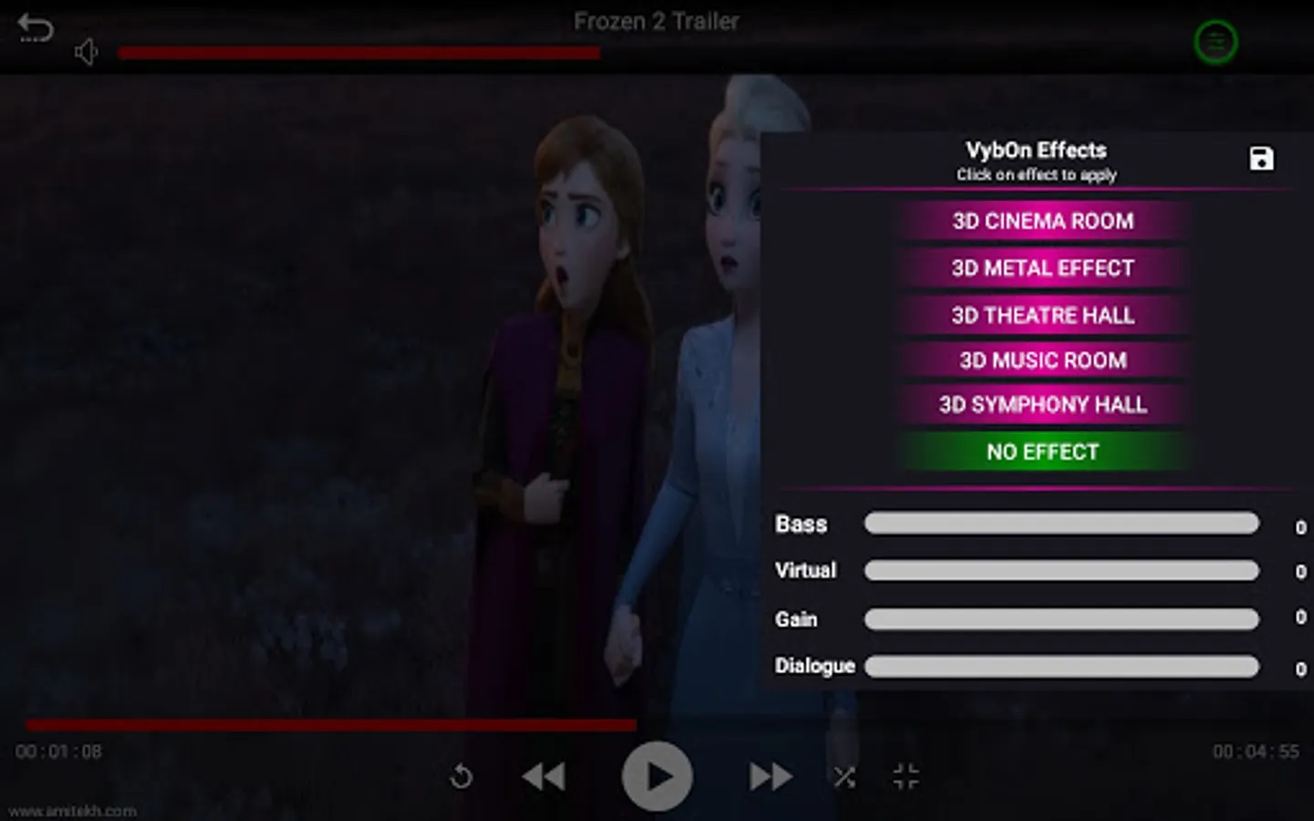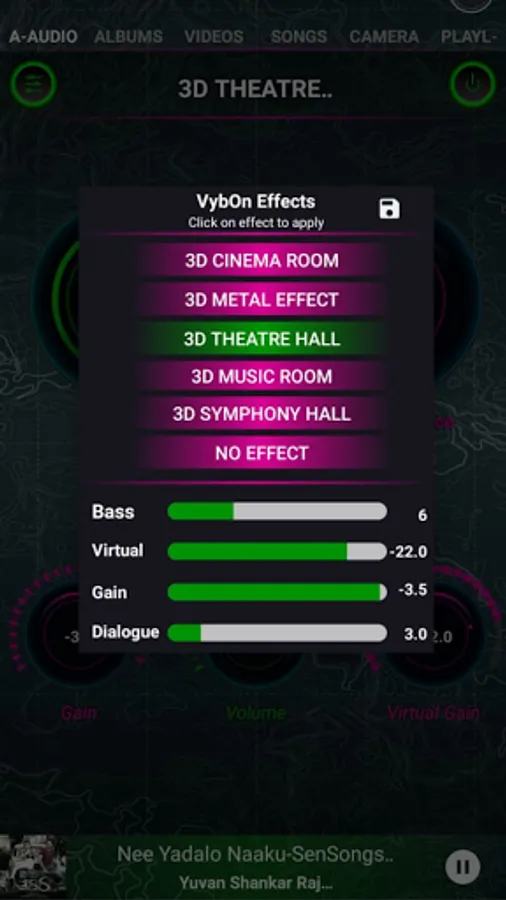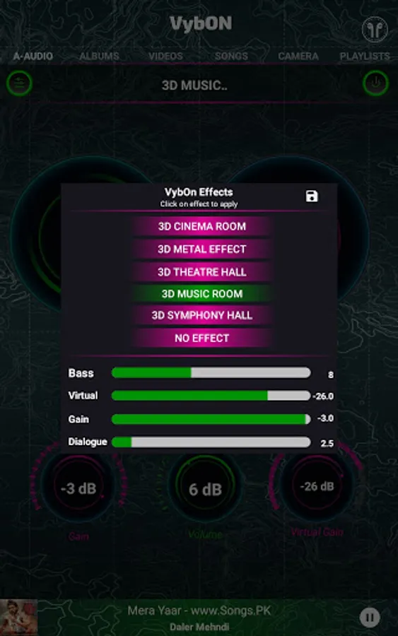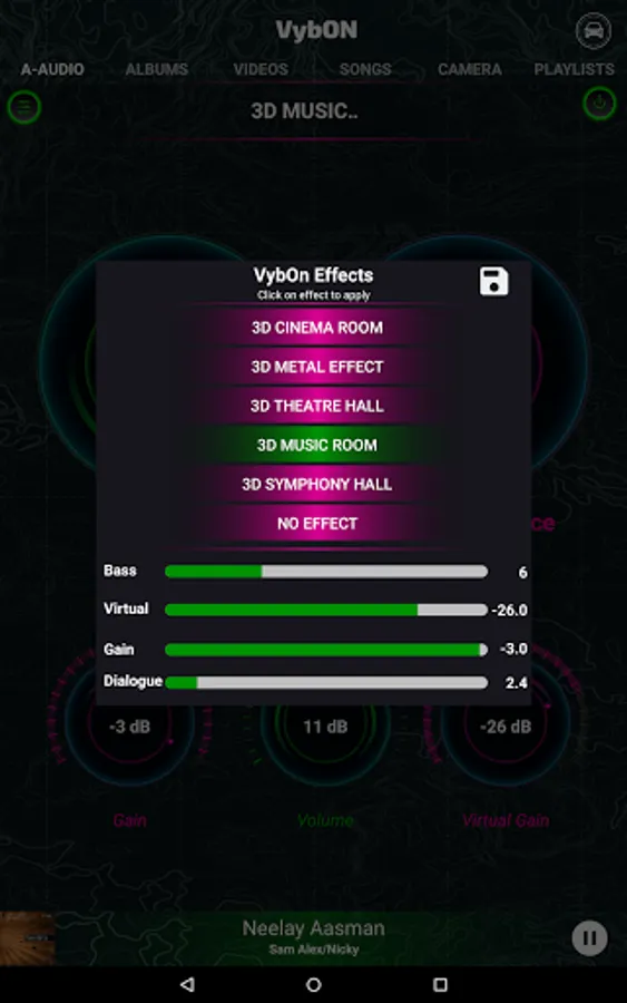 Get your Vibe On with the new VybOn Music Player by AMI Technologies. VybOn is an Immersive (3D Audio) and Virtualizer Media Player of Video and Audio. VybOn 3D engine simulates 16 channels around users head 360 degrees. VybOn Music player render the music with Higher order Ambisonics and customized HRTFs. It is the first-ever Audio Video Player which Visualizes different world famous Music Rooms or Symphony Halls in combination with 3D Audio Engine. Transform your mobile or Car into a world famous Music Room or Symphony hall just by a click. VybOn’s 3D engine renders the Music for “Out-Of-Head” sound localization. VybOn Virtualizer renders the Music to virtualize famous Theater Room, Symphony Hall, Music Room, Metal Hall and Cinema Room and list is evolving. VybOn Bass boost and Dialogue enhancer makes listening experience to the new level. VybOn effects work for Mobile and Cars. It gives a WOW listening experience to users on Phones, Tablets and Automobiles. It comes with attractive and simple media player UI to apply different effects on any video/audio playback.