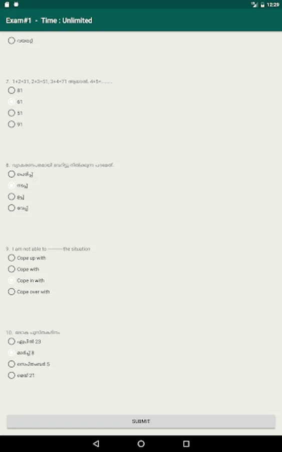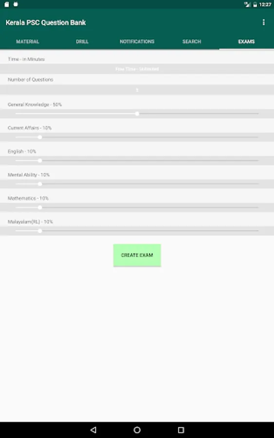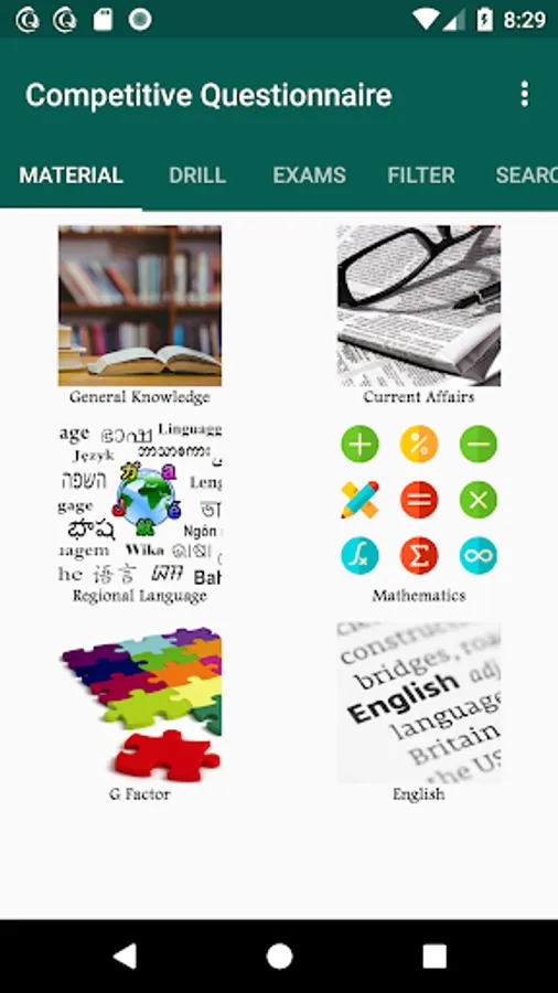 The application have Learning Mode, MCQ Question Drill Practice , Exam mode with customization of time , number of Question , percentage of category etc, etc.