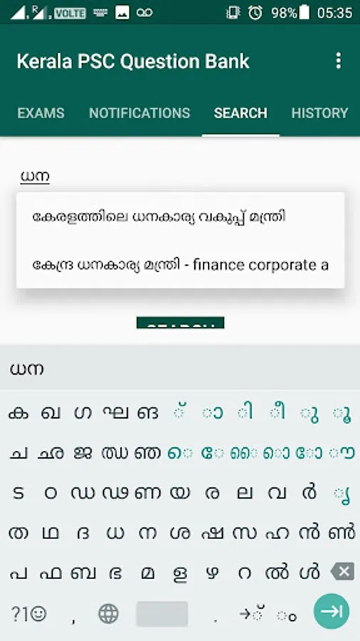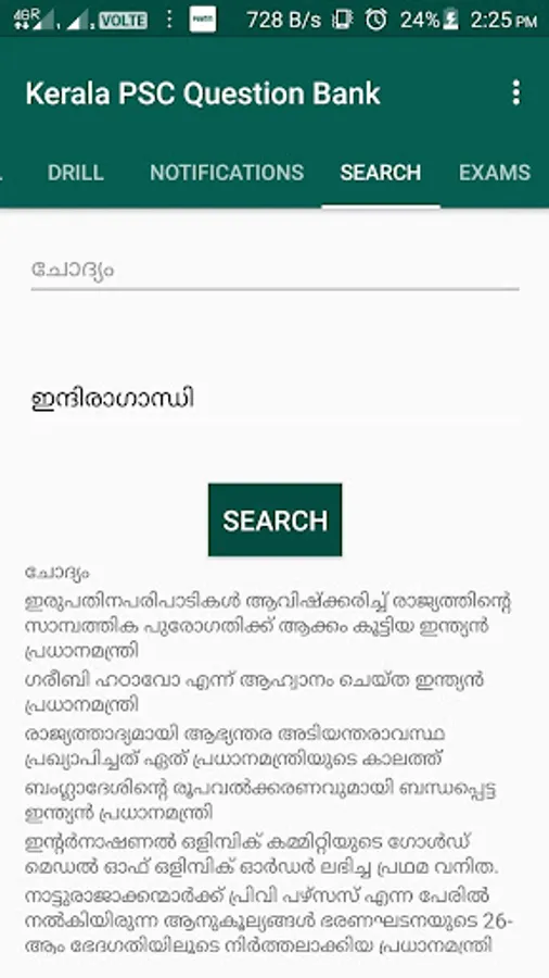 For Example Easily you can check the who is the Governor of Kerala. Like that you can check what answers are associated with Indira Gandhi. The search is primarily targets Malayalam Typing .