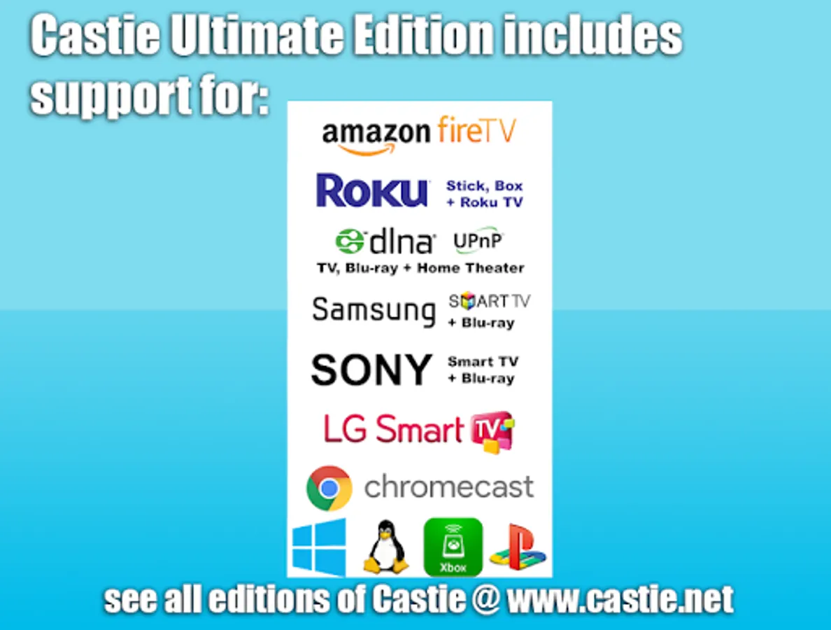 * Please try before you buy. The Free editions of Castie allow up to 10 minutes of playback per item so you may see Castie working.