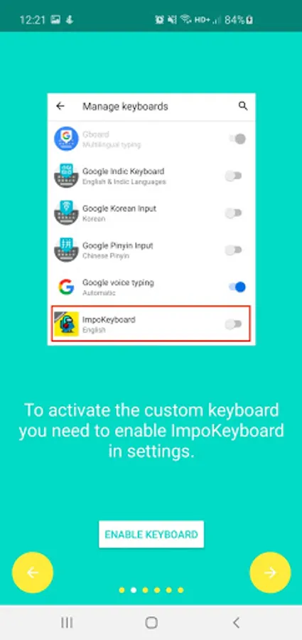 - Enable ImpoKeyboard in settings