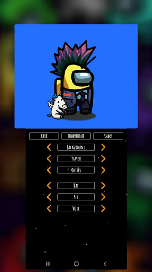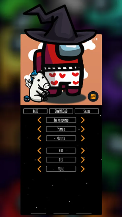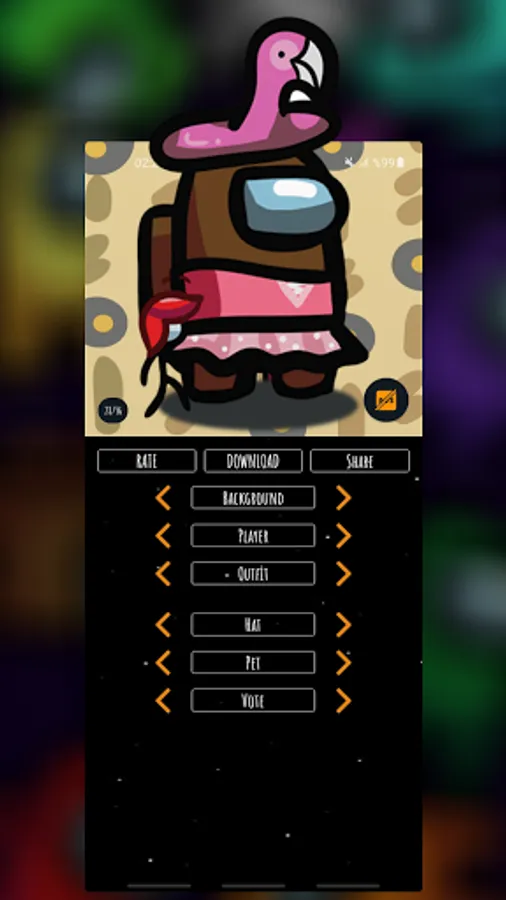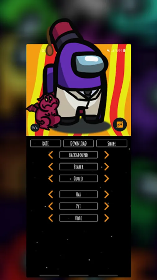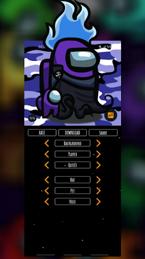 Create the coolest outfits among hundreds of backgrounds, hats, pets, outfits, use your skin and share! Customize your new Among Us character. Everyone will be jealous of your skin!