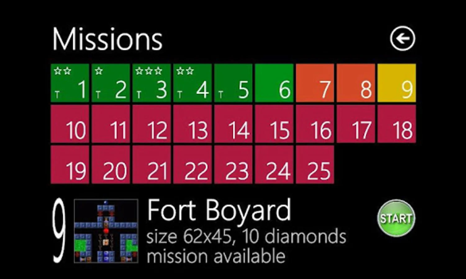 Mission game is a classic old style game (such as were games Boulderdash or Supaplex) in the new form. Agent (you) must collect the diamonds and go to the exit. But your work is complicated by falling boulders, insidious brutes and much other. You walk on the grass, which disappears behind you and the path which you choose fundamentally influences the course of the each mission.