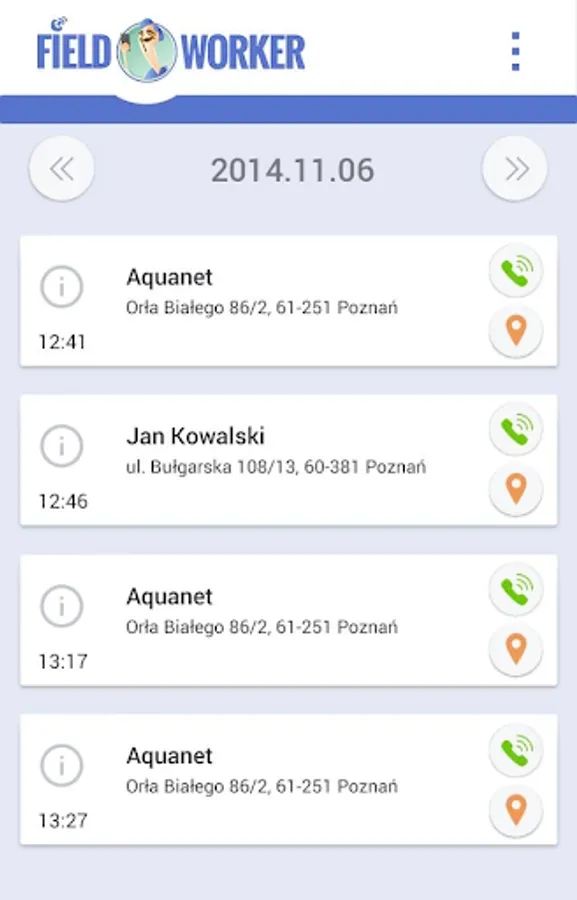 • Measurement of working time and travel time to the customer