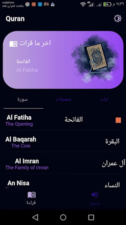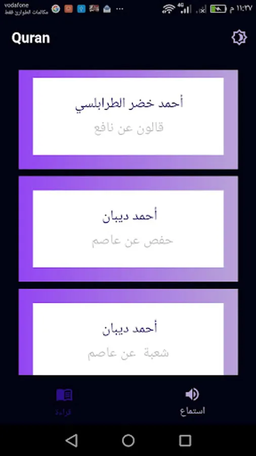 A Mushaf with the voices of many reciters with different readings, and a Mushaf reading in the order of pages, verses and surahs