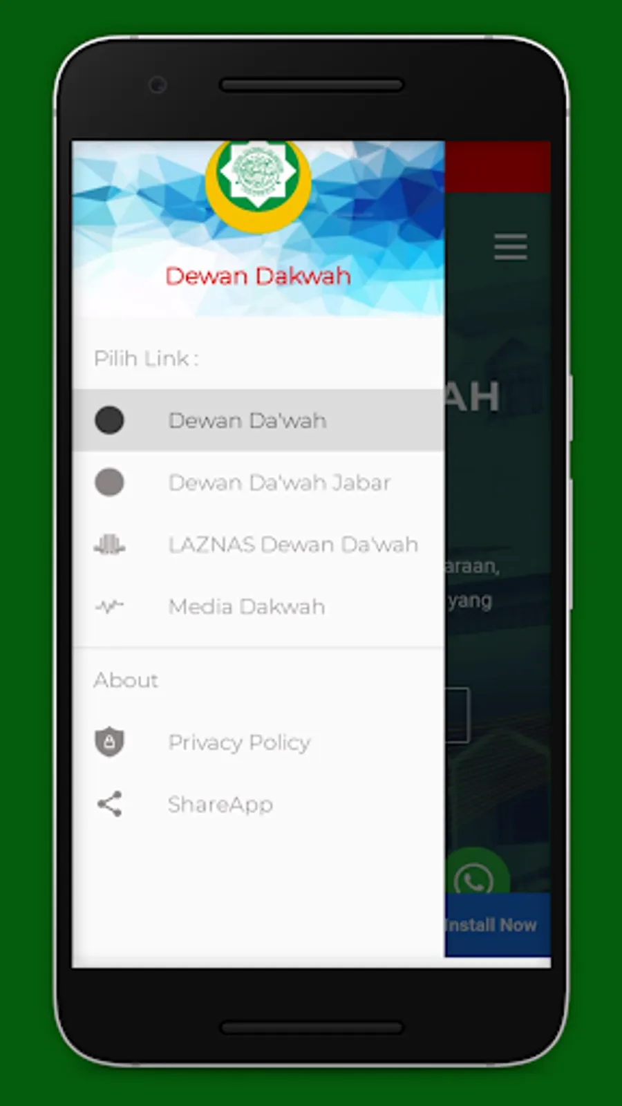 Access the website of the Central Da'wah Council, West Java Da'wah Council, National Amil Zakat Institution (LAZNAS) Da'wah Council, Da'wah Media, and others from just one application.